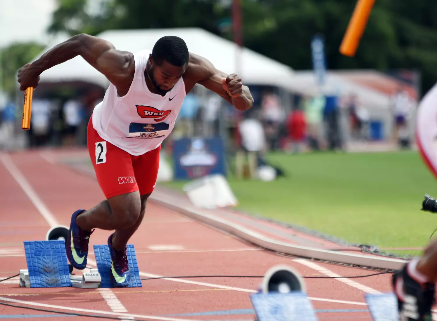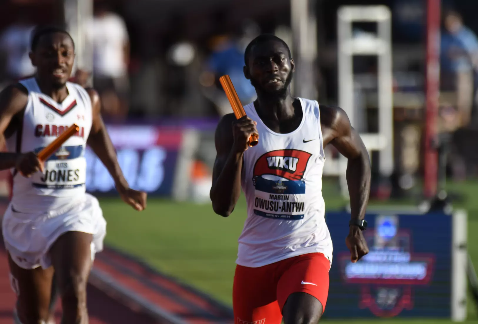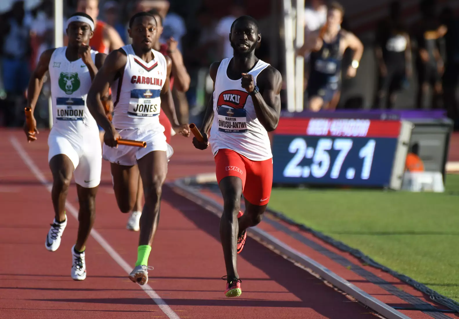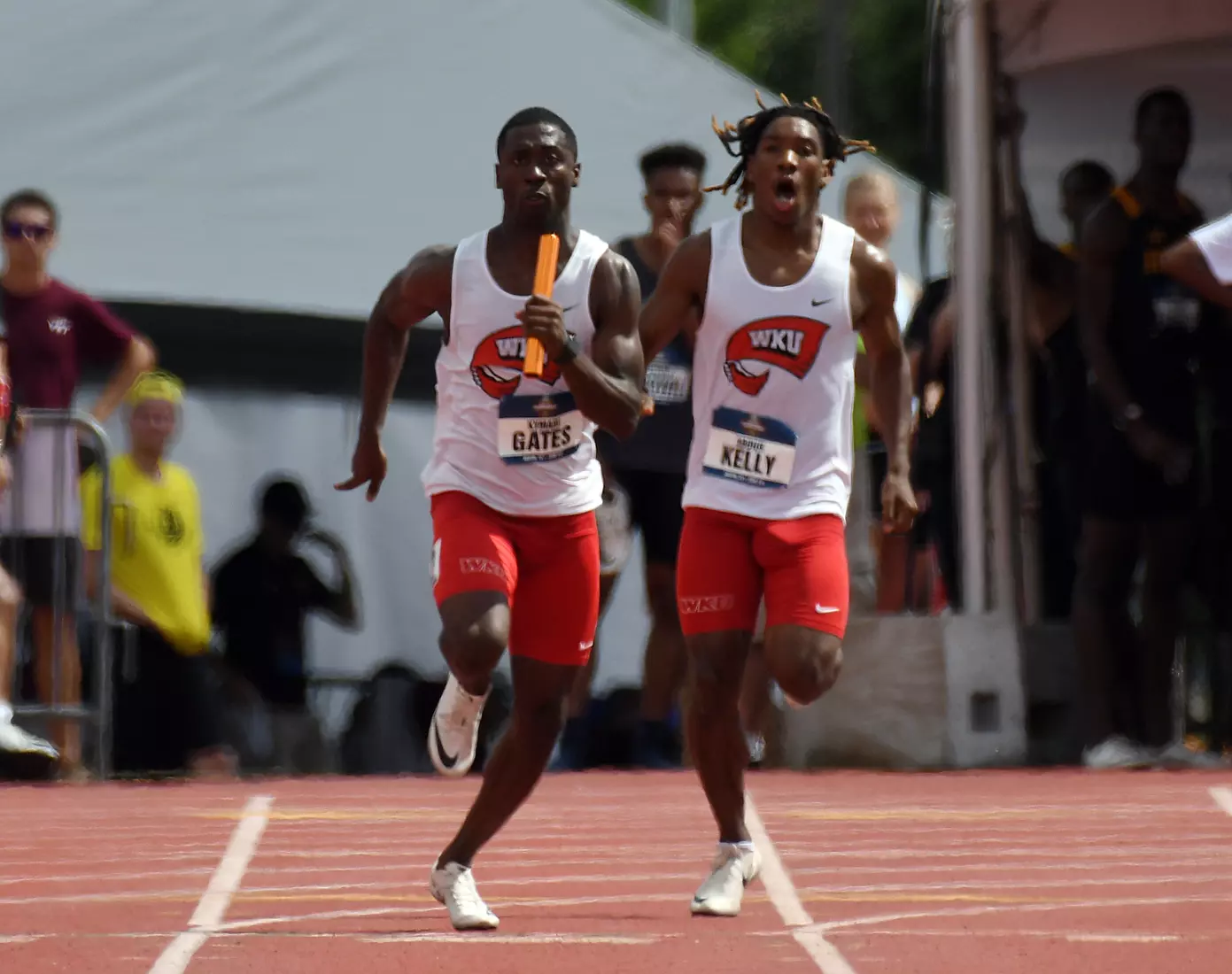 WKU's final action of the day came in the men's 4x400 relay where the team clocked what would have been a school record at 3:02.04. After the group of Kelly, Gates, Oliver Alexandre and Owusu-Antwi won the third heat, a protest was filed and WKU's time was disqualified.